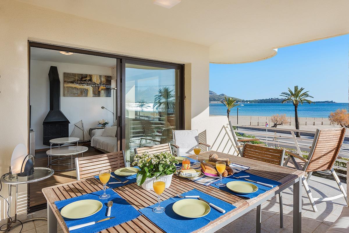 Wake up to the sound of the sea and start your day with sunrise views from this beautifully positioned first-line beach apartment in Puerto Pollensa. Located on the first floor and just across the street from the long sandy beach, this bright and welcoming property is ideal for guests who want to combine beachside relaxation with stunning scenery and easy access to local life.